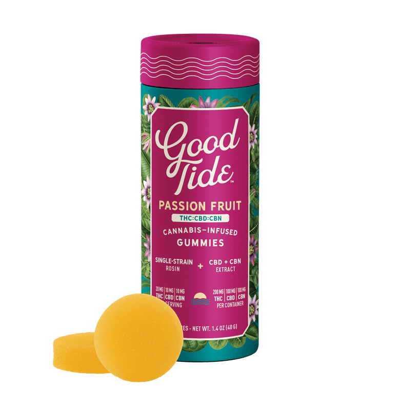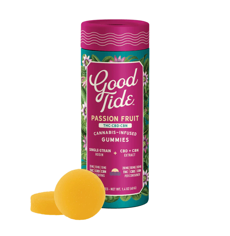 Good Tides Passionfruit THC : CBD : CBN Solventless Hash Gummies 100mg