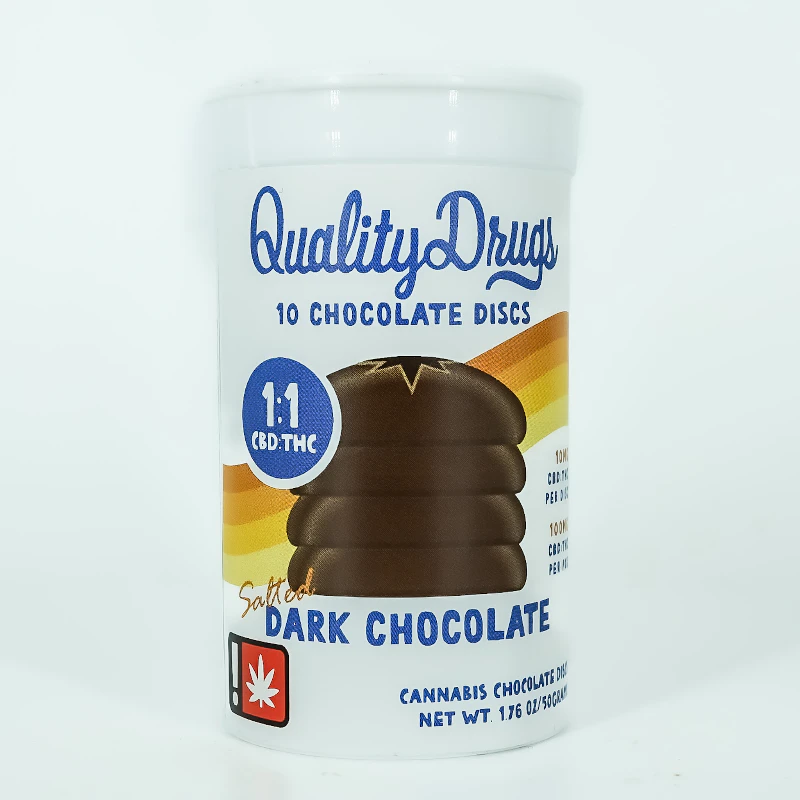 Quality Drugs 1:1 Salted Dark Chocolate Discs 10pk